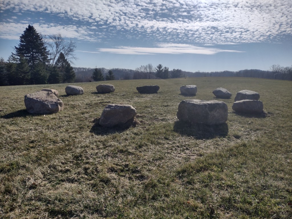 The Native American Advisory Committee has been working to meet the needs of the Community Assessment. Large grandfathers (boulders) were rescued from construction sites around campus and brought to the land. They now stand in a quiet circle for gatherings. The community requested cedar trees for the area around the future pavilion. Our Facilities crew, led by Doug LaLone planted 10 Eastern Cedars along the Northeast edge of the Land on November 10, 2022, with more planned for planting this spring. We’re raising funds for the purchase of Paw-Paw trees that will make up the orchard. And we have created a 10-year vision plan using the community assessment goals to work with the University’s development team to begin fundraising for the long-term goals of the site.